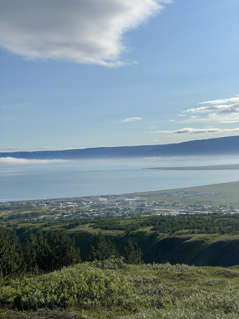 Við byrjum gönguna við Sauðárkrókskirkju og höldum rakleitt upp á Nafirnar. Þegar upp er komið